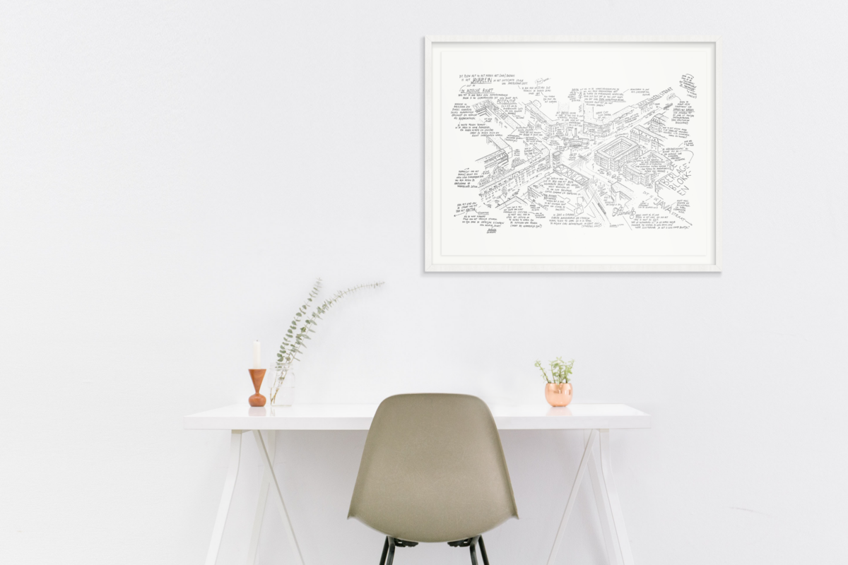 De tekening word afgedrukt op 200 gram natuurwit art paper.