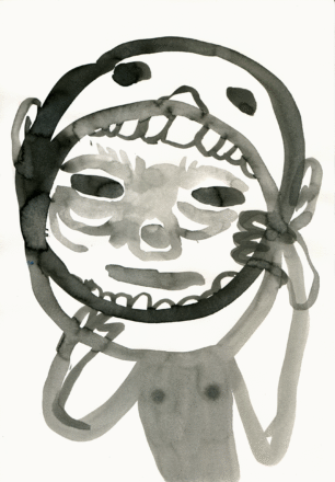 Gekleurde tekeninkt op papier. 25 x 35 cm.