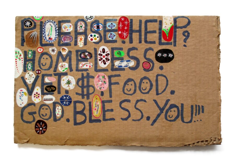 When I lived in New York, I bought the signs that people on the street used to ask for money. I wanted to work on the signs I bought without it feeling cynical or hypocritical.